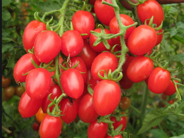 圣女果又稱小櫻桃,珍珠小番茄,櫻桃小番茄,既可蔬又可果,也可以做成蜜餞。果實(shí)直徑約1~3厘米,鮮紅碧透(另有中黃、橙黃、翡翠綠等顏色的新品種),味清甜,無(wú)核,口感好,營(yíng)養(yǎng)價(jià)值高且風(fēng)味獨(dú)特,食用與觀賞兩全其美,深受廣大消費(fèi)者青睞。圣女果性甘、酸、微寒,歸肝、胃、肺經(jīng);具有生津止渴, 健胃消食,清熱解毒,涼血平肝,補(bǔ)血養(yǎng)血和增進(jìn)食欲的功效;